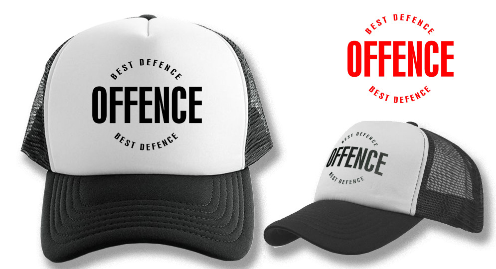 TRUCKER CAP OFFENCE BEST DEFENCE BLACK