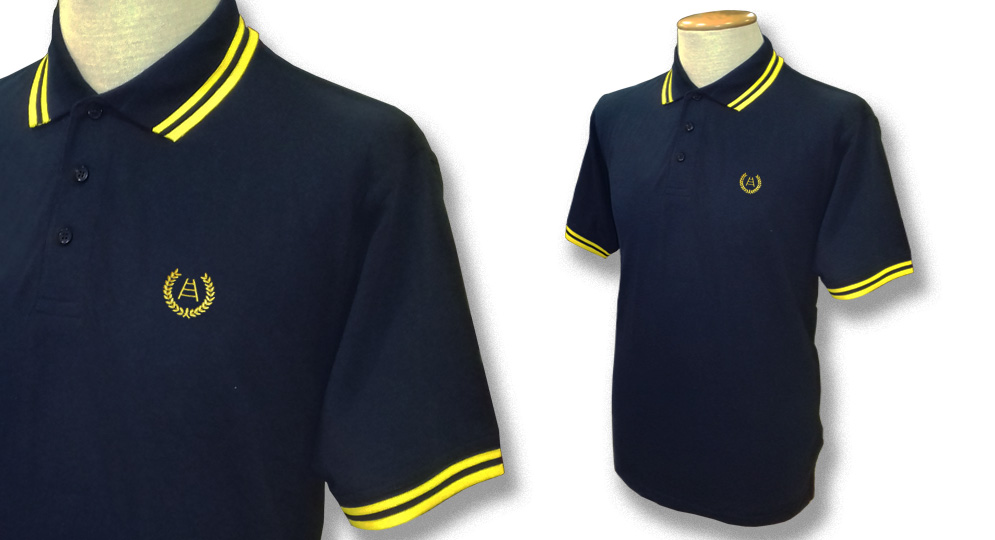 polo 50%cotone 50%poliestere - colore blu notte righine gialle - ricamata
