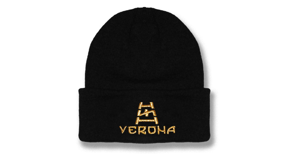 cuffia con risvolto lanetta acrilica - colore nero - misura unica - ricamata